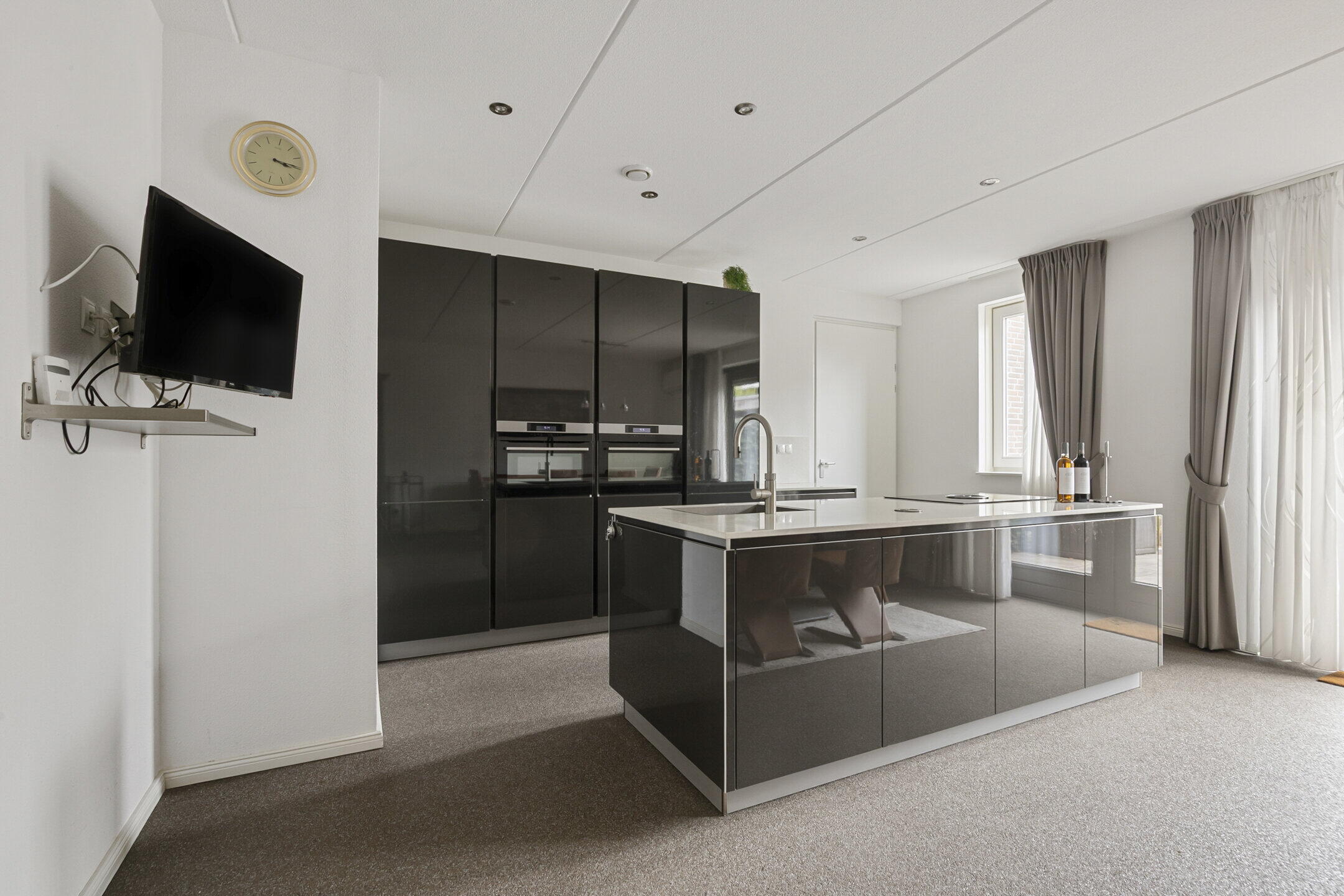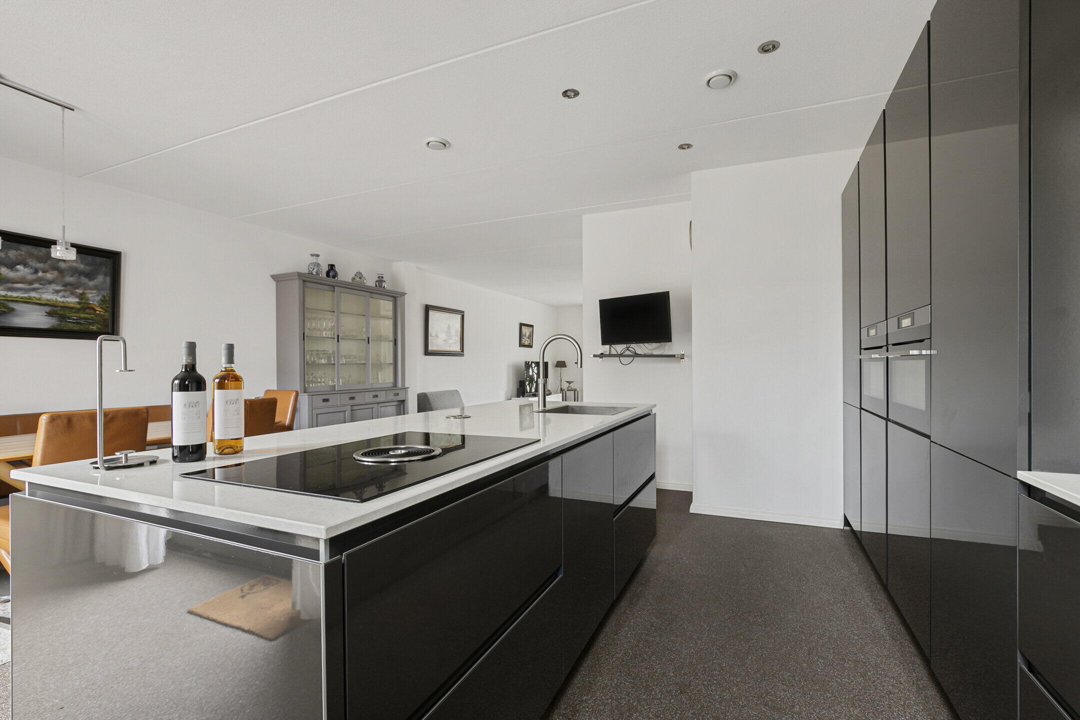 • De luxe, moderne keuken is voorzien van een kookeiland en alle denkbare inbouwapparatuur;