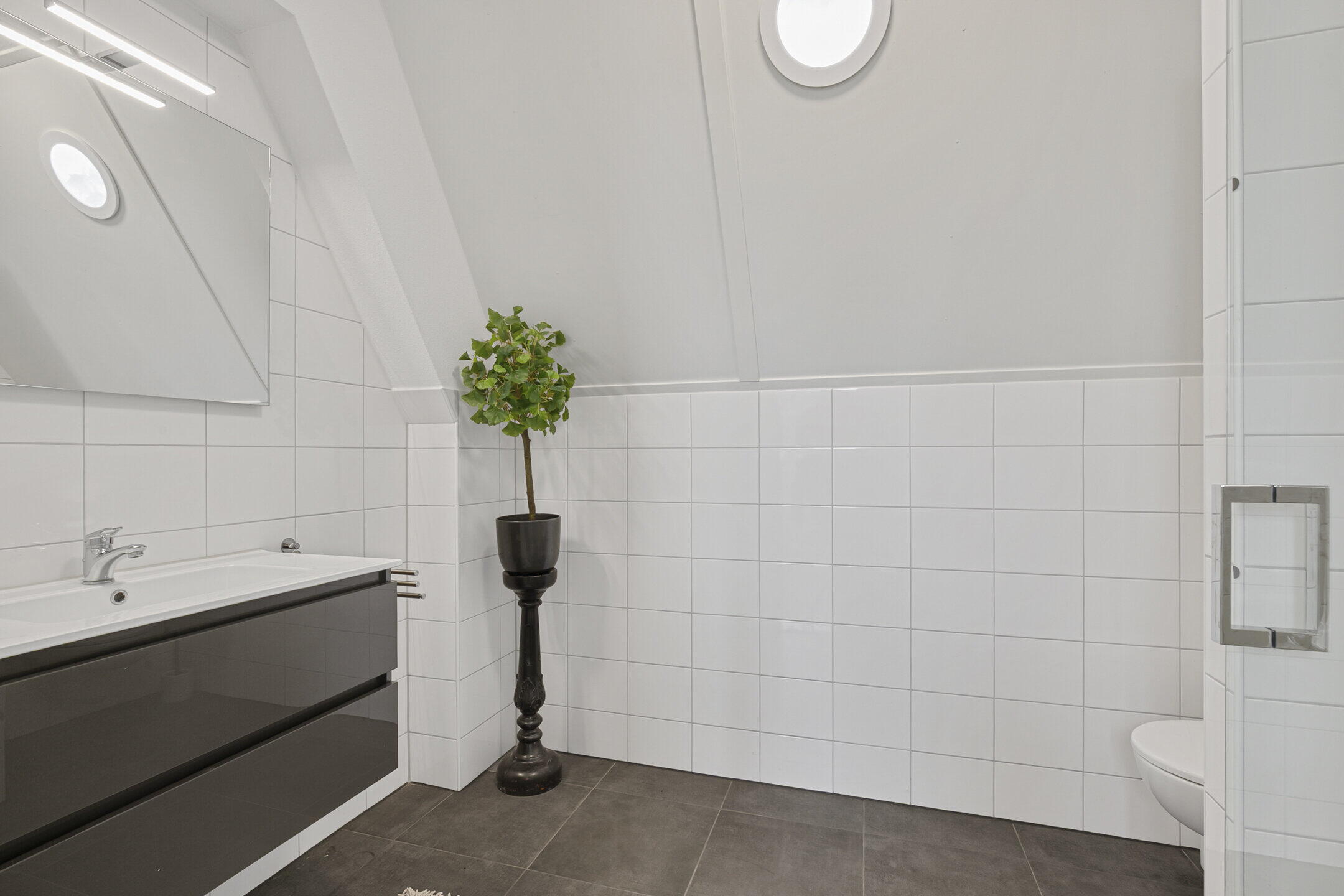 De overloop geeft toegang tot de 3 slaapkamers en de badkamer. Aan de voorzijde is de ruime ouderslaapkamer welke over de volle breedte van de woning is gesitueerd met een prachtig uitzicht en voorzien van een vaste kast met schuifdeuren. Centraal in het midden is de 2e moderne badkamer met vloerverwarming, een douche, het 3e toilet en een wastafel. De badkamer is uitgevoerd met een Solartube wat zorgt voor een natuurlijk daglicht. Aan de achterzijde zijn nog 2 slaapkamers. Ook deze slaapkamers hebben een mooi, vrij uitzicht. De overloop heeft een bijzonder fijn lichtinval en een unieke kijk naar buiten door de aanwezigheid van een dakkapel. Deze verdieping is voorzien van een siergrindvloer met vloerverwarming.